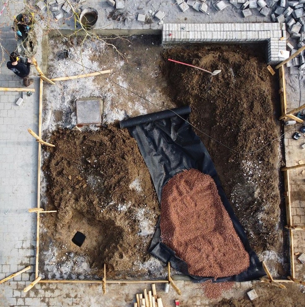 Flanders Depaves! In Merchtem on school campus 'De Plataan', we are depaving and greening the playgrounds. After an extensive participation process with kids, teachers parents and neighbours, the first shovel was finally put into the ground: 7x7=49m² of tiles were lifted for an experimental garden where primary school children can test and play. We also took the opportunity to measure the permeability and composition of the soil. In the meantime, we are elaborating the final design…The objective for september '22: 1300m² permeable and green play area!