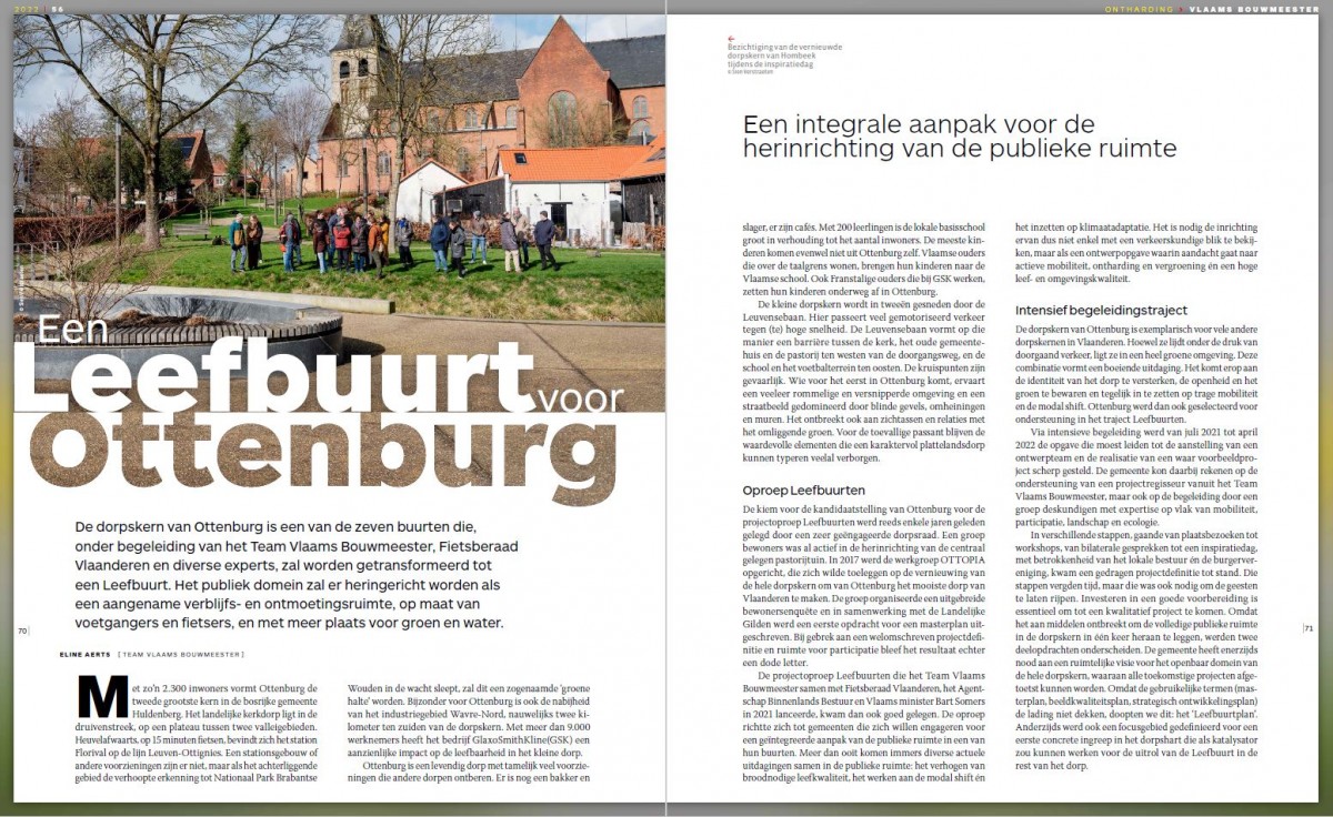 One of our projects appeared in the last issue of Ruimte: "Een leefbuurt voor Ottenburg". The town center of Ottenburg is one of the seven districts that will be transformed into a Lively Neighborhood, with the support of the Team Vlaams Bouwmeester, Fietsberaad Vlaanderen and various experts.