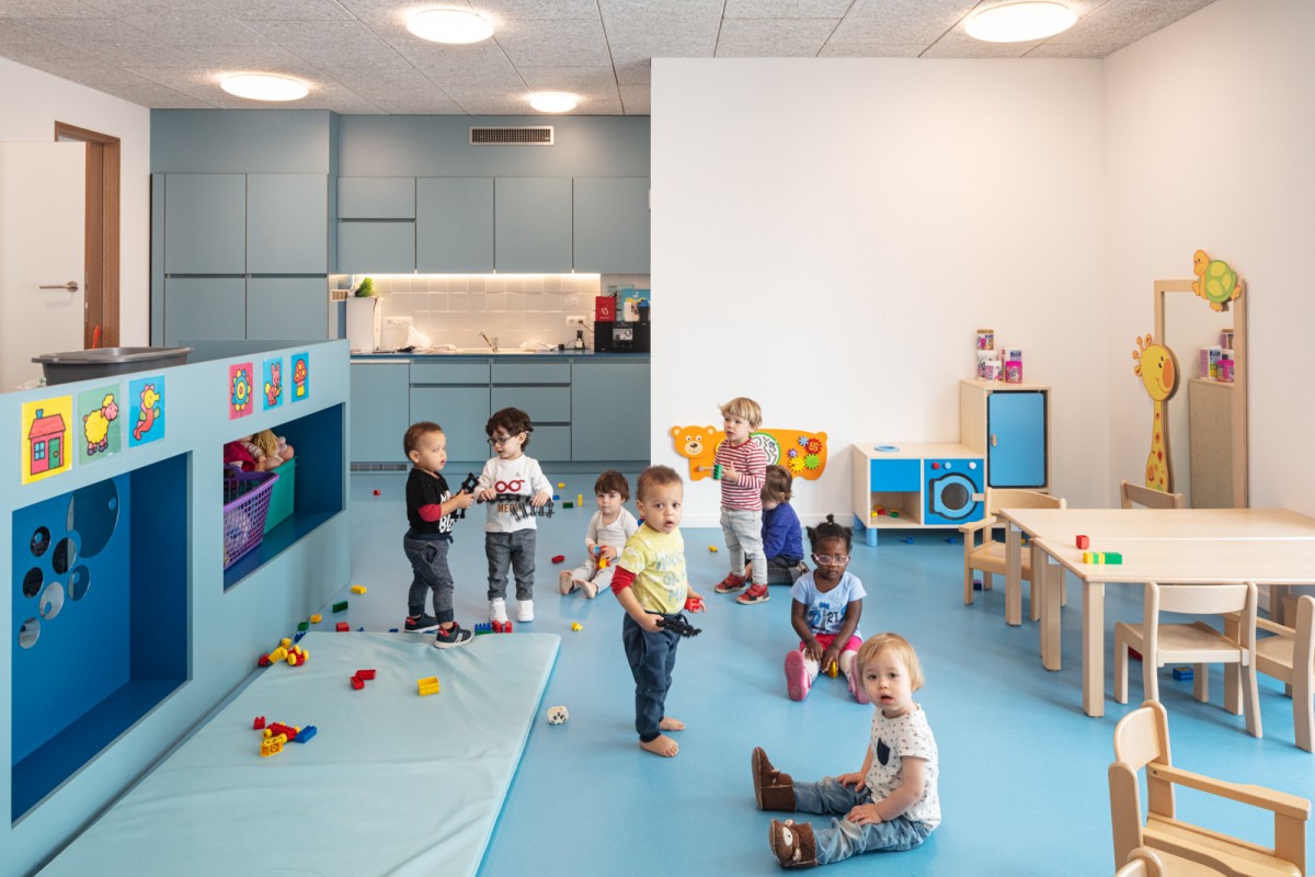 Nurseries are more than play and sleeping places for babies and toddlers; they are environments where kids playfully come into contact with each other and the world. They are also meeting places for young parents, a hub in the local social fabric.